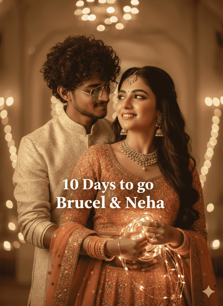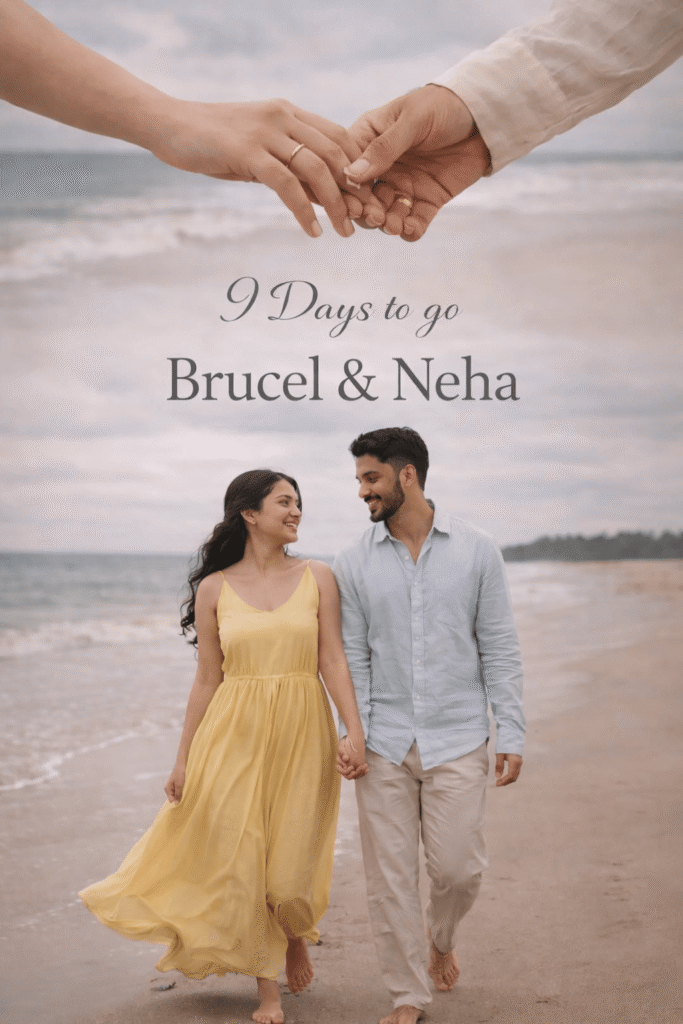 Text: In the middle of the image “9 Days to go” written with fancy but elegant font, no fancy edit, below that “Haresh & Priya” is written in big letters than above one.