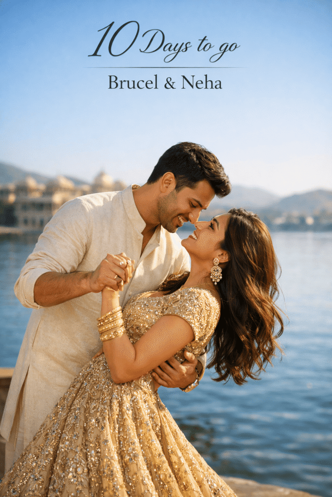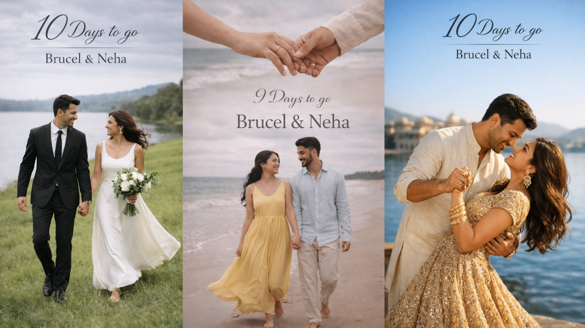 Text: In the middle of the image “5 Days to go” written with fancy but elegant font, no fancy edit, below that “Raj & Priya” is written in big letters than above one.